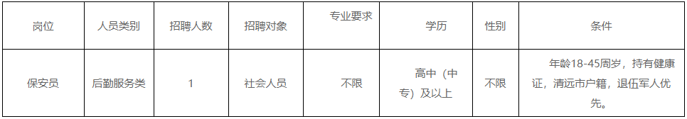 清遠市清城區(qū)機關(guān)事務管理局因工作需要,根據(jù)《關(guān)于印發(fā)<清遠市清城區(qū)機關(guān)事業(yè)單位專項工作聘員、合同制聘員以及后勤服務類人員管理辦法>的通知》(城區(qū)人社[2022]20號)文件精神,面向社會公開招聘后勤服務類人員1名,現(xiàn)將有關(guān)事宜公告如下: