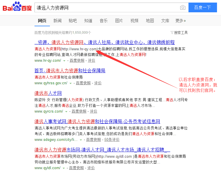 恭喜“清遠(yuǎn)人力資源網(wǎng)”www.muzicmd.com榮登百度搜索清遠(yuǎn)地 區(qū)首位。清遠(yuǎn)人力資源網(wǎng)是由清遠(yuǎn)市人力資源市場(chǎng)指導(dǎo)、清遠(yuǎn)市錦繡 前程人力資源有限公司運(yùn)營(yíng)的官方求職招聘平臺(tái)。從3月份正式推 廣到現(xiàn)在,本網(wǎng)站已經(jīng)吸引了眾多企業(yè)與求職者注冊(cè)。